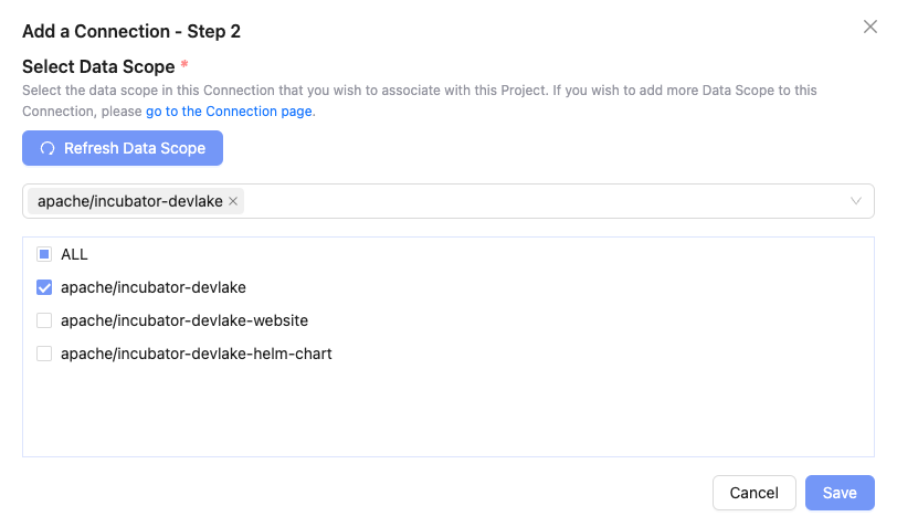 1.3 Add your project's Jira boards. Click the Associate Scope Config icon to configure for DORA metrics.