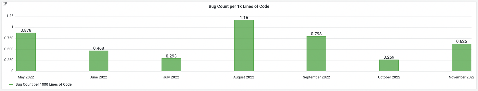 If you want to measure the monthly trend of Bugs per 1k lines of code in the screenshot below, please run the following SQL in Grafana.