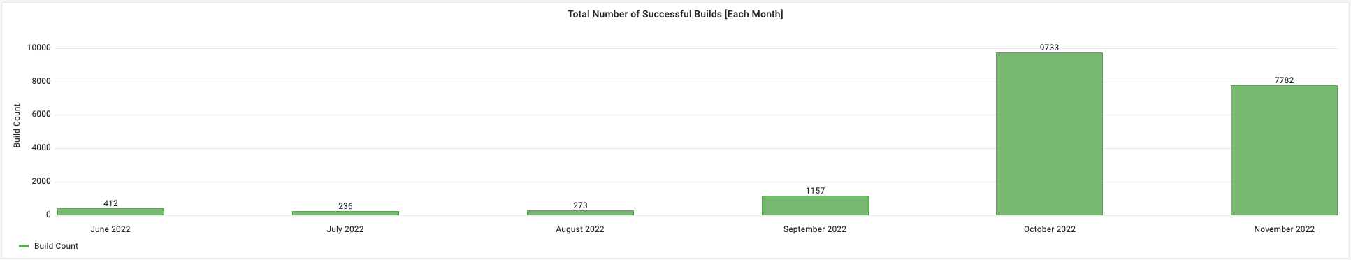 If you want to measure the monthly trend of the successful build count in the screenshot below, please run the following SQL in Grafana.