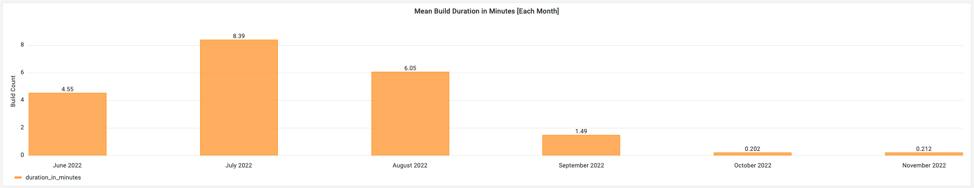 If you want to measure the mean duration of builds in the screenshot below, please run the following SQL in Grafana.