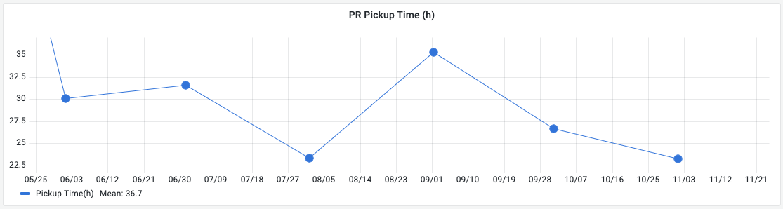 PR Pickup Time shows how engaged your team is in collaborative work by identifying the delay in picking up PRs.