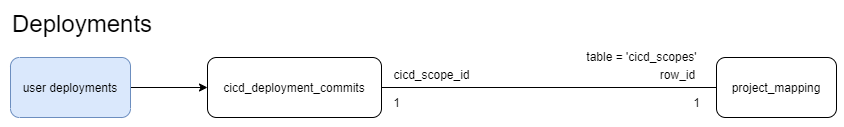 Following Entity-Relationship diagrams below represent how the data is mapped and used for each of the 4 DORA metrics. They are based on the SQL queries for each of the charts.