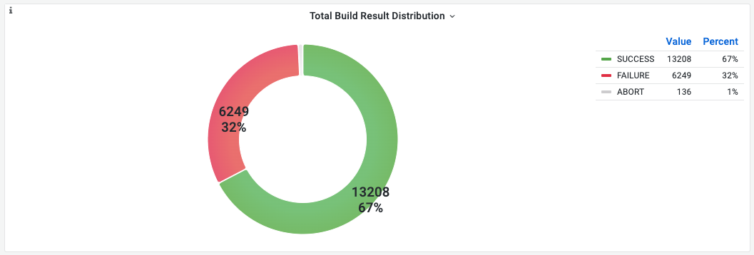 If you want to measure the distribution of CI build result like the donut chart below, please run the following SQL in Grafana.