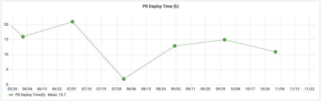 If you want to measure the monthly trend of PR deploy time in the screenshot below, please run the following SQL in Grafana.
